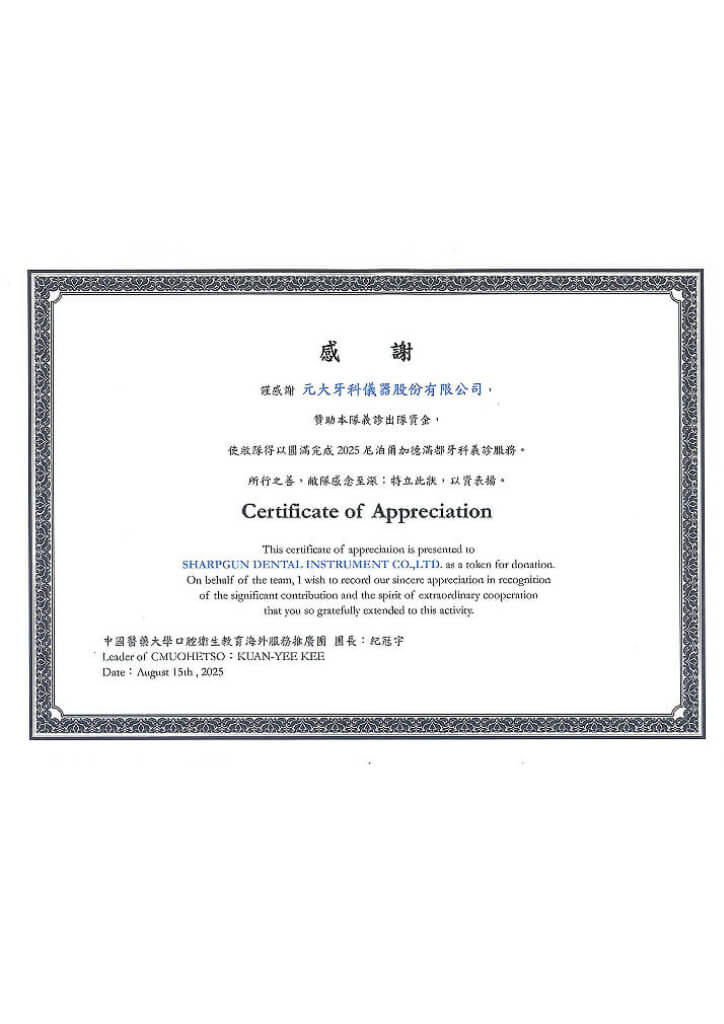 中國醫藥大學尼泊爾義診捐款感謝狀